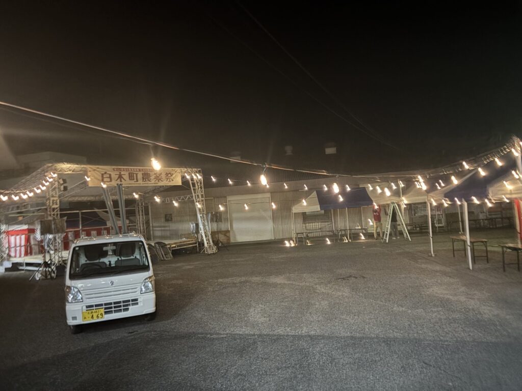 夜の雰囲気を盛り上げるライティングも、ライトを貸し出してくれた企業と一緒に無事設置!