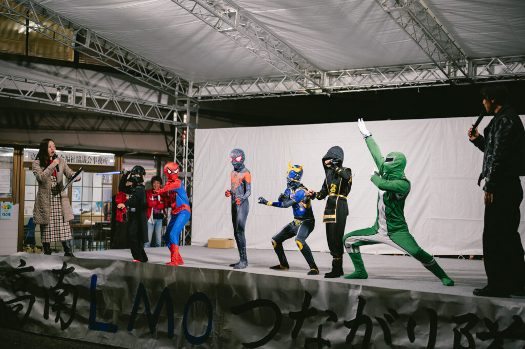 さいねい龍二さんのトークショーとヒーロー誕生!そしてみんなで菓子撒き