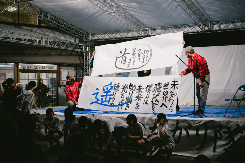 ステージのラストを飾ったのは、地元中学生による書道パフォーマンス。