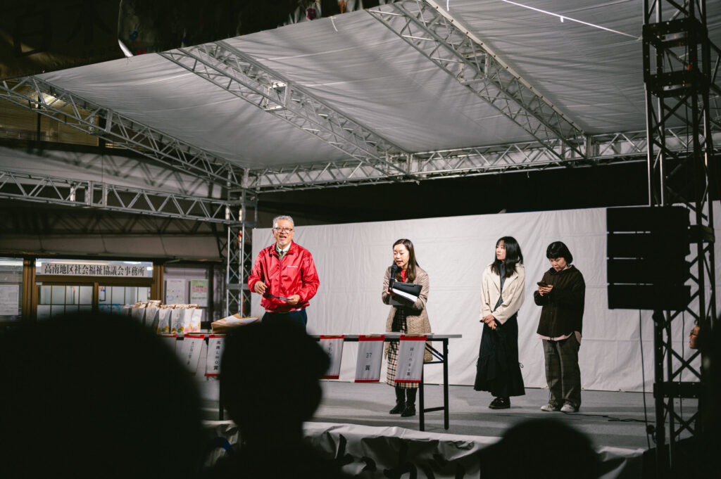 お祭りの出展ブースからのプレゼントや地元のお米などが賞品として53点用意された大抽選会。